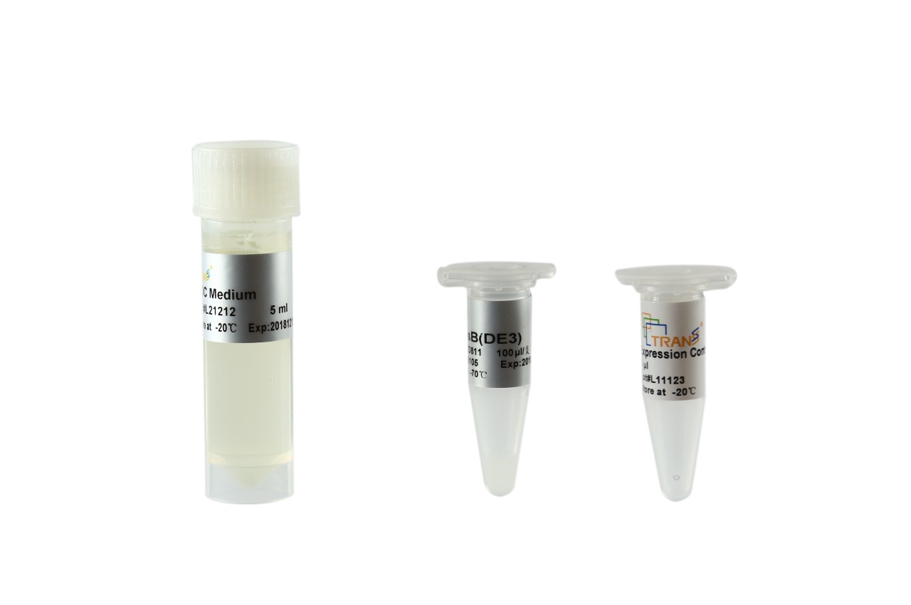 TransB(DE3) 化學(xué)感受態(tài)細(xì)胞經(jīng)特殊工藝制作,可用于DNA 的化學(xué)轉(zhuǎn)化。細(xì)胞具有卡那霉素(KanR) 和四環(huán)素(TetR) 抗性。使用pUC19 質(zhì)粒DNA 檢測,轉(zhuǎn)化效率可達(dá)107 cfu/μg DNA。使用Control Plasmid I (Amp+) 用于檢測細(xì)胞是否具有表達(dá)功能,表達(dá)蛋白大小為25 kDa。