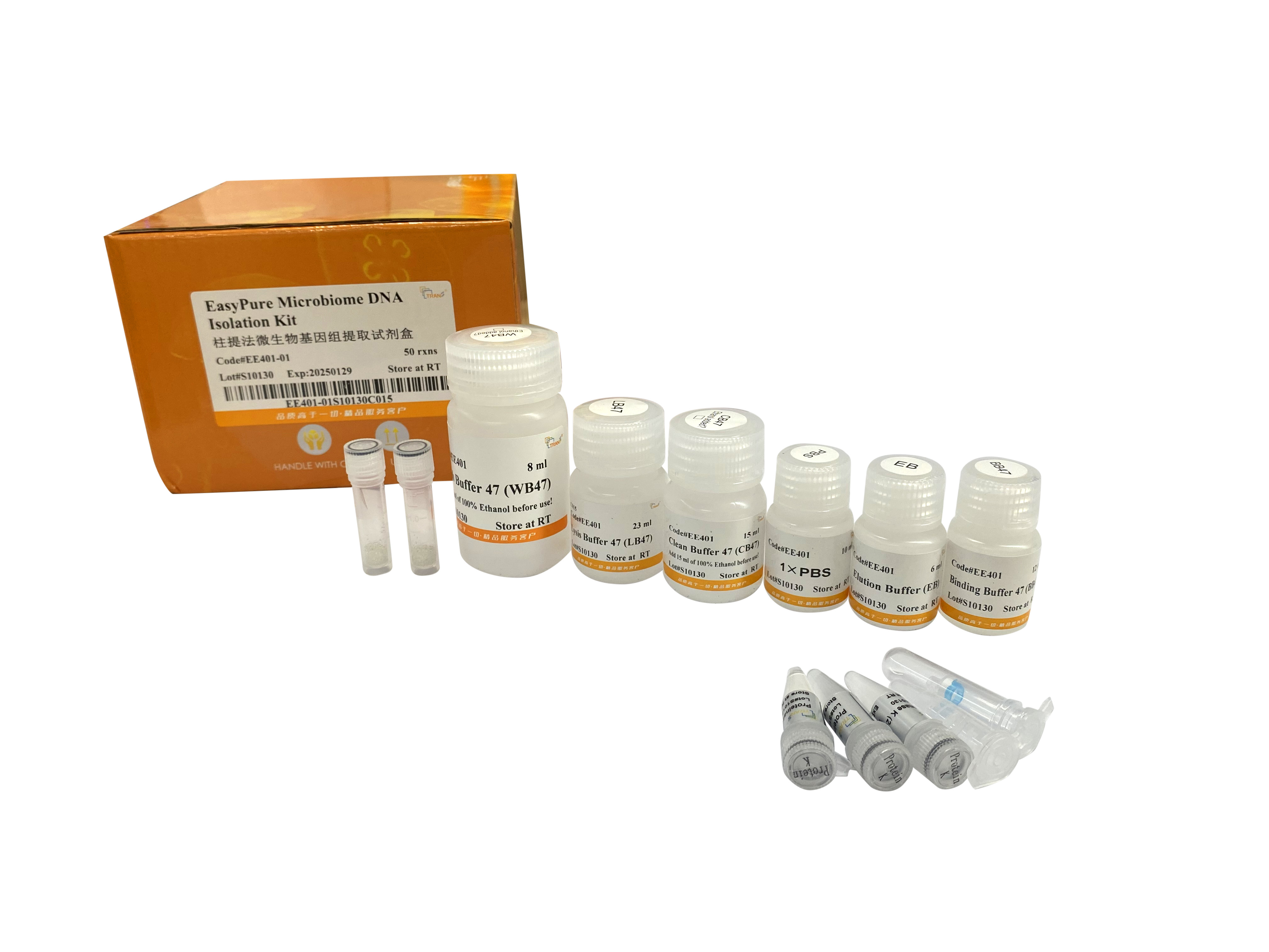 EasyPure? Microbiome DNA Isolation Kit是一款適用于從血液、肺泡灌洗液、液化痰液、鼻咽或口咽拭子、胸腹水、腦脊液、羊水等生物樣品中分離純化宿主和微生物基因組DNA的產(chǎn)品。試劑盒采用硅膠膜離心柱特異吸附微生物 DNA,分離富集的DNA適用于多種下游應(yīng)用,包括PCR、 qPCR、宏基因組或16S rDNA文庫(kù)構(gòu)建等實(shí)驗(yàn)。 可與TransNGS?Host DNA Depletion Kit (EH301) 搭配使用,達(dá)到清除宿主核酸的效果。
