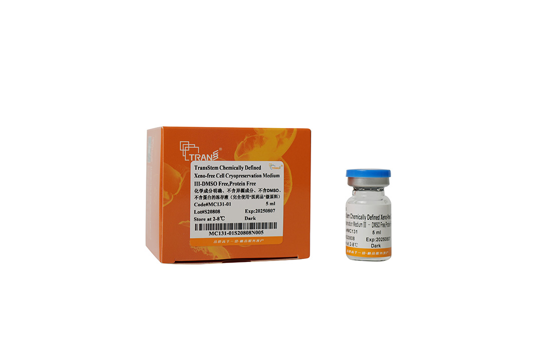 TransStem? Chemically Defined Xeno-free Cell Cryopreservation Medium III—DMSO Free,Protein Free 是一種化學(xué)成分明確、無動物源性成分、不含二甲基亞砜(DMSO) 、不含蛋白成分、完全使用“醫(yī)藥品”級原料的即用型細胞凍存液。該產(chǎn)品已完成毒性實驗,可用作細胞藥物的藥用輔料,通用于各種細胞類型,包括間充質(zhì)干細胞,淋巴細胞等。該產(chǎn)品穩(wěn)定性好,能有效提高各類細胞復(fù)蘇活率。使用該產(chǎn)品凍存細胞可直接存放于-80℃冰箱凍存,無需經(jīng)過費時的程序降溫過程。