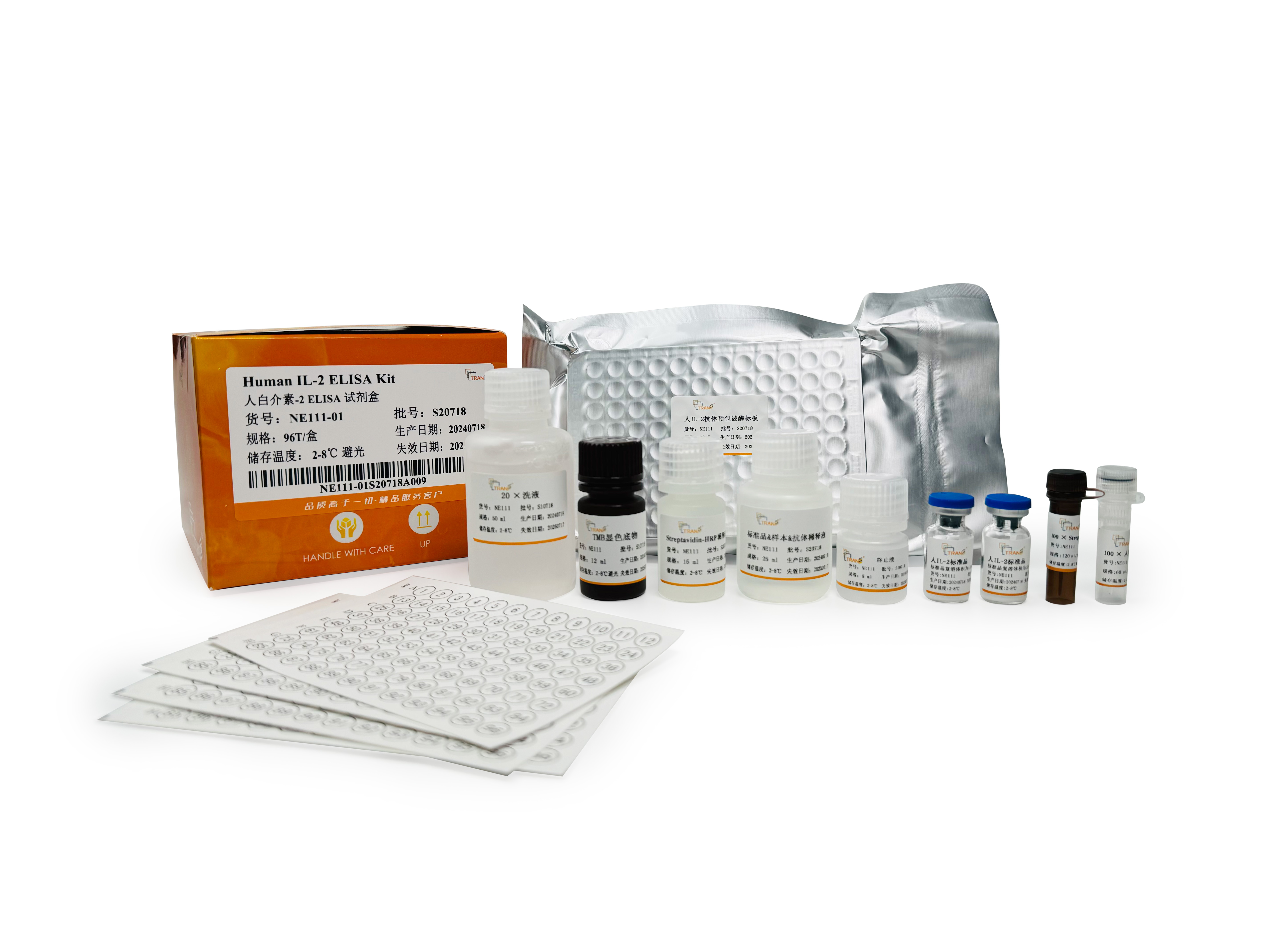 本試劑盒采用雙抗體夾心ELISA法定量測定人血清、血漿和細胞培養(yǎng)上清中的IL-2含量。本試劑盒采用高親和力的抗人IL-2抗體預包被酶標板,將標準品/待測樣本和生物素標記的抗人IL-2檢測抗體同步加入微板孔中,經過孵育后樣本中存在的IL-2會與酶標板上的預包被抗體和檢測抗體特異性結合。洗滌去除未結合物后,將辣根過氧化物酶標記的鏈霉親和素(Streptavidin-HRP)加至微孔板中并孵育,通過檢測抗體上的生物素和鏈霉親和素發(fā)生的高強度非共價結合,形成“包被抗體-人IL-2蛋白-檢測抗體-Streptavidin-HRP”免疫復合物。再次洗滌后,將顯色底物TMB加至微板孔中,HRP會催化TMB底物生成藍色產物,顏色反應的深淺將與樣本中IL-2的濃度成正相關。而后加入終止液終止反應,在450 nm波長(參考波長570 - 630 nm)處測定吸光度值。通過繪制標準曲線,由樣本吸光度值可計算出樣本中所含IL-2濃度。本試劑盒特異性強、檢測靈敏度高,同時操作更加便捷。