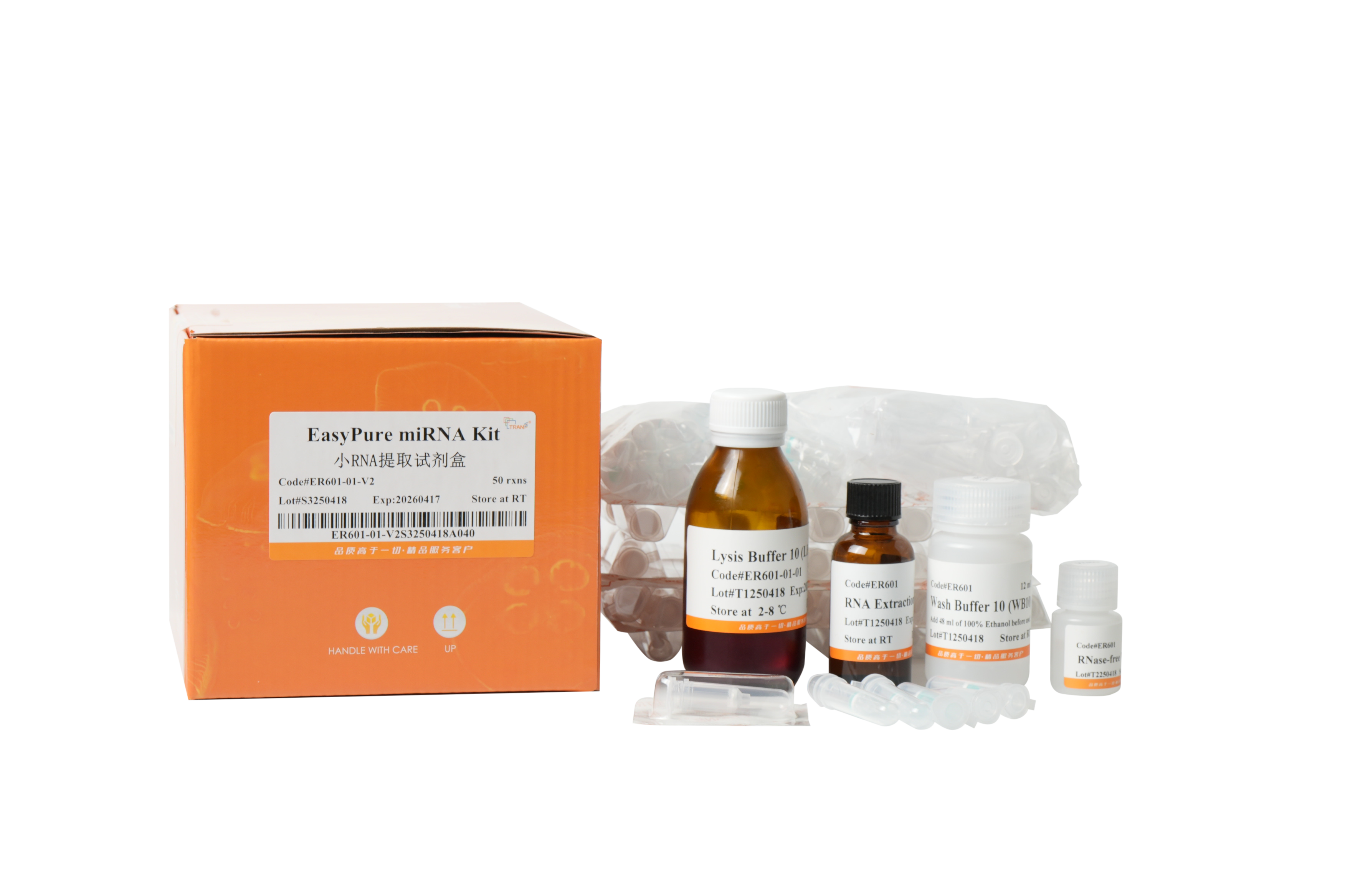 本產品適用于從細胞、組織、新鮮血液、外泌體中提取miRNA和Total RNA,裂解樣品后,加入RNA Extraction Agent,溶液分為無色水相和粉紅色有機相,RNA 在水相。通過調整加入水相中無水乙醇的用量,使RNA離心柱特異地吸附大分子量RNA(28S rRNA, 18S rRNA, mRNA)后,將流出液 (包含小于200 nt 的RNA, 如miRNA, siRNA, shRNA, snRNA 等) 再經miRNA離心柱特異地吸附純化得到的miRNA;通過調整加入水相中無水乙醇的用量,使RNA離心柱吸附所有RNA (包含小于200 nt 的RNA, 如miRNA, siRNA, shRNA, snRNA 等)。本產品裂解能力強、提取量高、應用范圍廣。