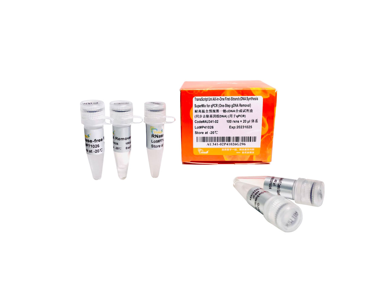 TransScript? Uni All-in-One First-Strand cDNA Synthesis SuperMix for qPCR (One-Step gDNA Removal)包含反轉(zhuǎn)錄反應(yīng)所需的全部成分(TransScript? Uni RT, RNase Inhibitor, Anchored Oligo(dT)20 Primer, Random Primer(N9), dNTPs, Buffer),可在同一管反應(yīng)中實(shí)現(xiàn)cDNA 合成和去除基因組DNA。反應(yīng)時(shí),只需加入5×All-in-One Reaction Mix for qPCR、TransScript? Uni All-in-One Enzyme Mix、模板RNA和水,在42℃-65℃條件下即可高效地合成第一鏈cDNA,同時(shí)去除RNA模板中殘留的基因組DNA 。另配有20×No RT Control Mix,用于配制無(wú)反轉(zhuǎn)錄酶的對(duì)照,判斷qPCR模板是否來(lái)自cDNA。該產(chǎn)品操作簡(jiǎn)便,降低操作過(guò)程中的污染機(jī)率。cDNA產(chǎn)物只適用于qPCR,不適用于常規(guī)PCR。