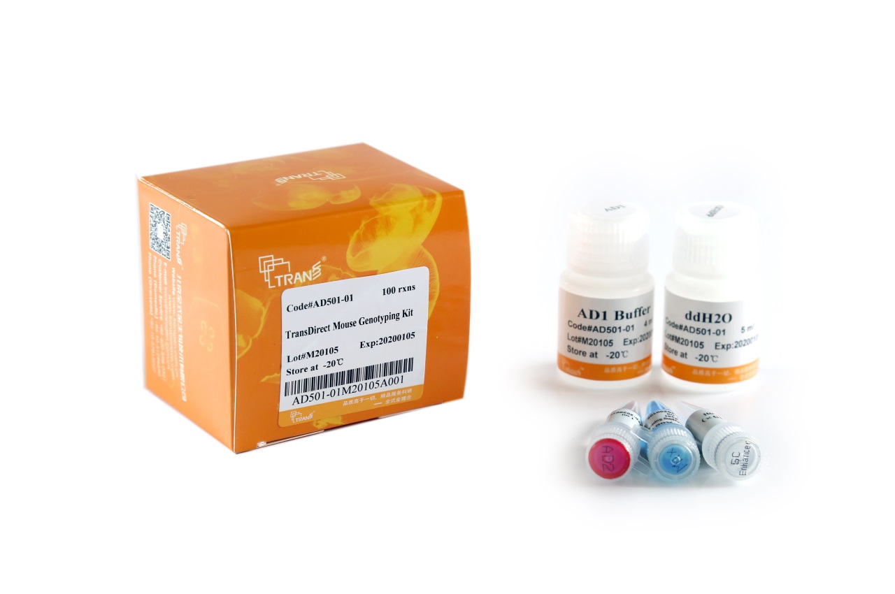 本試劑盒采用獨(dú)特的裂解液裂解小鼠基因分型常用的耳朵、腳趾、尾巴(新鮮或凍存組織)等組織,所得裂解物無需純化即可直接作為模板,用高效率、抗抑制的2×TransDirect? Mouse Genotyping SuperMix (+dye) 進(jìn)行擴(kuò)增,擴(kuò)增產(chǎn)物可直接電泳點(diǎn)樣。